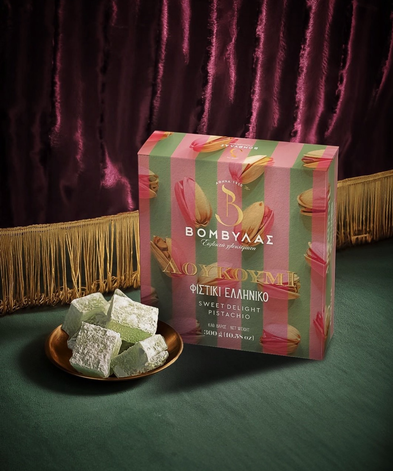 Μπουκιές λουκουμιών με γεύση φυστίκι κελυφωτό σε συσκευασία δώρου 300 γρ.