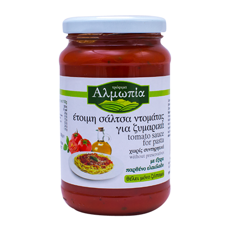 Συστατικά: ντομάτα, ζάχαρη, αλάτι, κρεμμύδι, θυμάρι, ρίγανη, βασιλικός, μαϊντανός, έξτρα παρθένο ελαιόλαδο.