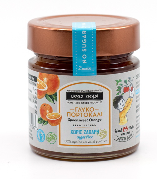 - Γλυκό κουταλιού πορτοκάλι χωρίς ζάχαρη, γλυκισμένο με χυμό μήλου